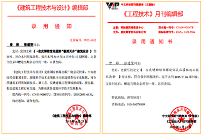 近日,安徽公司安庆博物馆项目的“安庆博物馆地图形‘徽派天井’建筑设计”论文和“安庆博物馆长螺旋钻孔压灌桩施工技术浅析”论文分别发表在全国期刊《建筑工程技术与设计》与《工程技术》。
