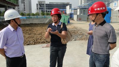 5月22日,在安徽公司工会主席童孝义的陪同下,局工会副主席孙红来到安徽公司时代广场和信达项目部,指导该项目创先争优等项工作。