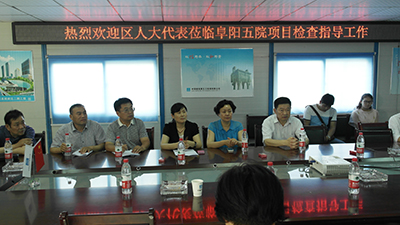 6月10日上午,阜阳市颍泉区人大常委会副主任李伟群带领区人大各个科室负责人来到阜阳市第五人民医院项目检查指导工作,业主单位相关负责人程晓莉及项目负责人李孝波等陪同。