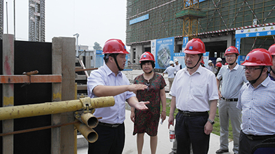 李孝波就五院项目具体建设情况做了详细介绍;业主代表程晓莉就五院设计布局及建成后的投入使用做了简要汇报,并对代表们重点关注的问题做了详细解答。随后,李伟群等深入到项目施工现场实地查看了施工进展情况,并对样板展示区的策划实施以及现场的安全警示文明施工等给予了充分肯定。通过听取汇报和现场视察,李伟群对阜阳五院项目建设给予了高度的评价,并对中建五局将阜阳市第五人民医院项目作为重点工程打造给予了高度赞赏。