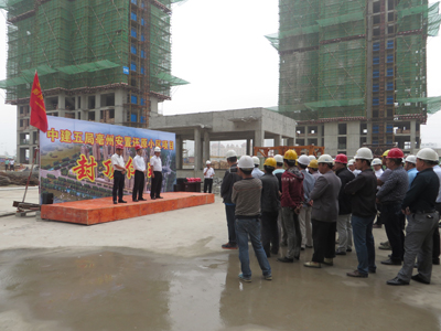 亳州安置还原小区板桥口工程自开工以来,受到社会各界关注,从选址到开建,破除万难,项目部通过与业主、监理等各参建单位的共同努力,在保证安全生产和工程质量的前提下,赶工期,拼进度,最终提前38天完成了13#楼主体封顶的既定目标。为此,钱四平代表公司工会为优秀劳务队颁发了封顶奖金,并宣布封顶仪式正式开始。