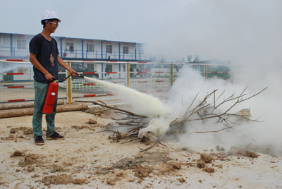 在安全总监姜玥宣读了演习方案之后,项目负责人曾彬做了动员讲话并宣布演习开始。“大火”燃起后,项目通讯组及时联系了消防队与救护车,抢险一组组员扛起灭火器冲入火场,二组迅速接通消防水管,同心协力抢险救火,医疗组搜救“伤员”放上担架转移至安全区,警戒组疏散了现场人员及车辆,并用警示带封锁火场外围,火势及时得到控制并被扑灭。演练结束后,邬勇军对本次应急演练表现出的迅速反应给予了好评,并希望项目部日后能够继续保安全、保生产,为安庆市市民上交一份满意的案卷。