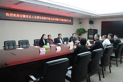 钱四平向阮怀楼等省总工会领导汇报了安徽公司工会工作情况。阮怀楼对五局安徽公司“超英爱心疏导室”、“超英爱心基金”、“超英杯劳动竞赛”等品牌活动给予好评,同时也为安徽公司在安徽省保障房建设领域取得的成绩点赞!阮怀楼在讲话中说,自己作为一名老合肥人,见证了中建五局入皖十多年来为安徽省建设所做出的努力和贡献!