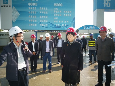 在听取了项目负责人关于项目建设情况的汇报后,凌市长仔细询问了项目推进过程中的安全管理、质量控制以及工期安排情况。随后,凌市长一行参观了安全体验区、扬尘在线监测仪、“实测实量”二维码技术。调研过程中,凌市长对现场信息化技术应用表示认同,并为项目建设取得的成绩感到高兴,勉励大家鼓足干劲,高度重视工程安全和质量,从薄弱环节入手,牢牢抓住关键节点,研究行之有效的方法,消除隐患,严防死守,打造精品工程。